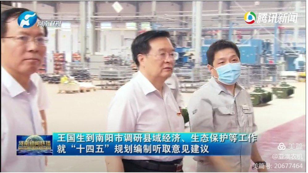 河南省委常委、省委秘書(shū)長(zhǎng)穆為民陪同調(diào)研,亞澳南陽(yáng)農(nóng)機(jī)總經(jīng)理史炳哲介紹相關(guān)情況!