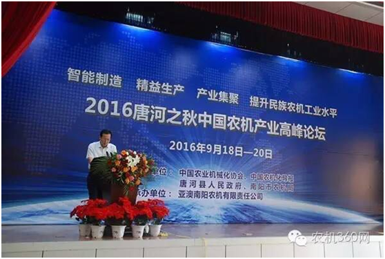 9月20日,由中國農(nóng)業(yè)機械化協(xié)會、《中國農(nóng)機化導(dǎo)報》、河南省唐河縣政府和南陽市農(nóng)機局共同主辦,亞澳南陽農(nóng)機有限責任公司承辦的2016唐河之秋中國農(nóng)機產(chǎn)業(yè)高峰論壇在河南省唐河縣舉行。全國各地農(nóng)機生產(chǎn)企業(yè)、當?shù)亟?jīng)銷商以及媒體代表共200多人參加了此次論壇。