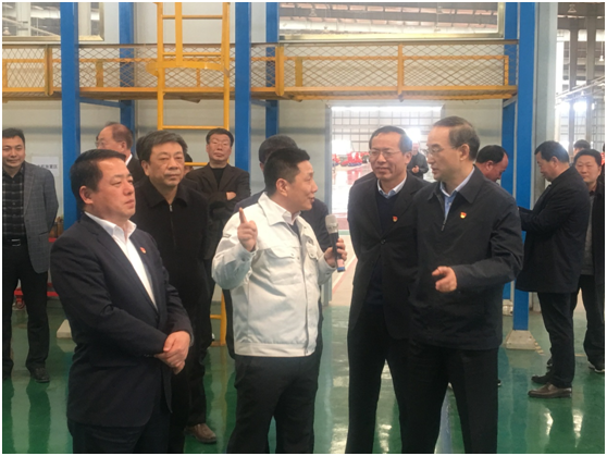 在唐河縣的亞澳南陽農(nóng)機(jī)有限公司,黃省長一行實(shí)地察看了企業(yè)生產(chǎn)現(xiàn)場,了解企業(yè)生產(chǎn)經(jīng)營、產(chǎn)品保護(hù)性耕作,防止耕作過程中的秸稈焚燒和揚(yáng)塵、技術(shù)創(chuàng)新等情況。對(duì)該公司的智能激光切割、自動(dòng)化機(jī)器人焊接及PLC粉體涂裝生產(chǎn)線,環(huán)保除塵系統(tǒng)詳細(xì)查看,邊聽邊問,尤其對(duì)亞澳農(nóng)機(jī)發(fā)展綠色清潔生產(chǎn)建設(shè)的粉體涂裝產(chǎn)線,和屋頂光伏電站、雨水收集循環(huán)利用大手筆投入尤為贊嘆。聽史炳哲總經(jīng)理匯報(bào)亞澳農(nóng)機(jī)涂裝設(shè)備是目前先進(jìn)的環(huán)形磁芯的粉體涂裝線,其采用PLC人機(jī)界面控制系統(tǒng),使各工序自動(dòng)化運(yùn)行,所有工序一次性完成,比傳統(tǒng)振動(dòng)雙面烘烤涂裝的品質(zhì)更加優(yōu)良,更節(jié)省涂料,還可實(shí)現(xiàn)廢料回收再利用,并實(shí)現(xiàn)了全自動(dòng)生產(chǎn)涂裝,高效節(jié)能。