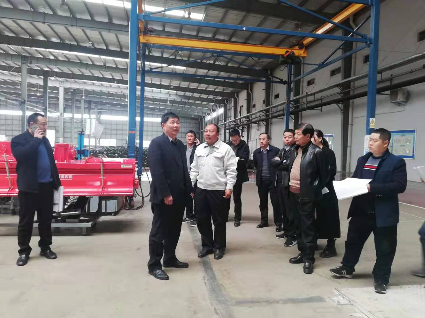 2019年11月19日上午,南陽市市委辦副主任趙玉云攜市發(fā)改委副調(diào)研員馬秋柏等一行在唐河縣工信局領(lǐng)導(dǎo)的陪同下蒞臨亞澳農(nóng)機(jī)視察亞大型復(fù)式旋耕機(jī)智能制造新模式項(xiàng)目發(fā)展建設(shè)情況。