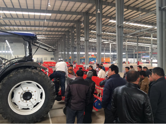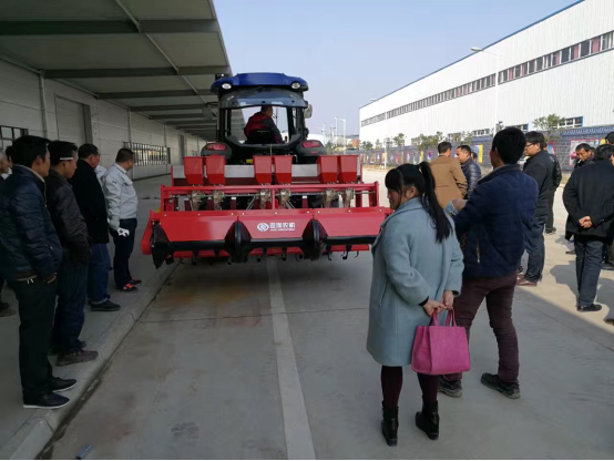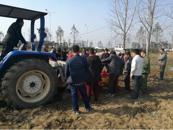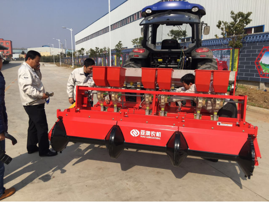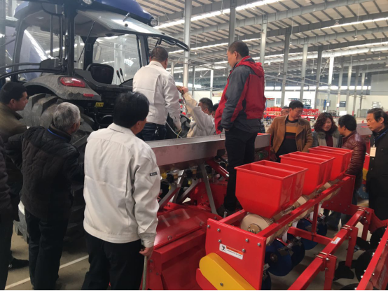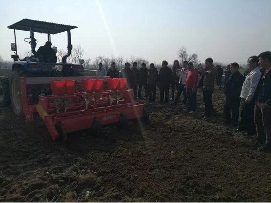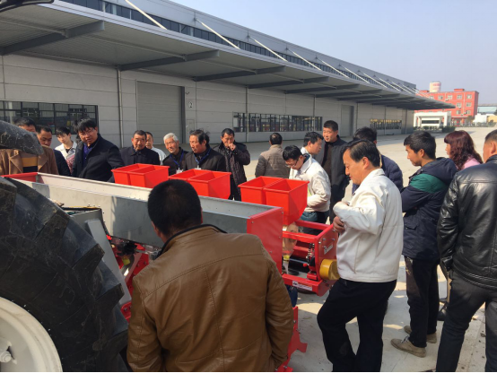 現(xiàn)場會上,亞澳專業(yè)技術(shù)人員及銷售經(jīng)理對我廠新研發(fā)的花生精量播種機做了詳細介紹,各鄉(xiāng)鎮(zhèn)社員及各站站長針對花生種植技術(shù)、施肥方法和機械化播種等方面做了詳細講解。隨后,60名用戶和農(nóng)技人員一同觀摩了機械化播種演示。